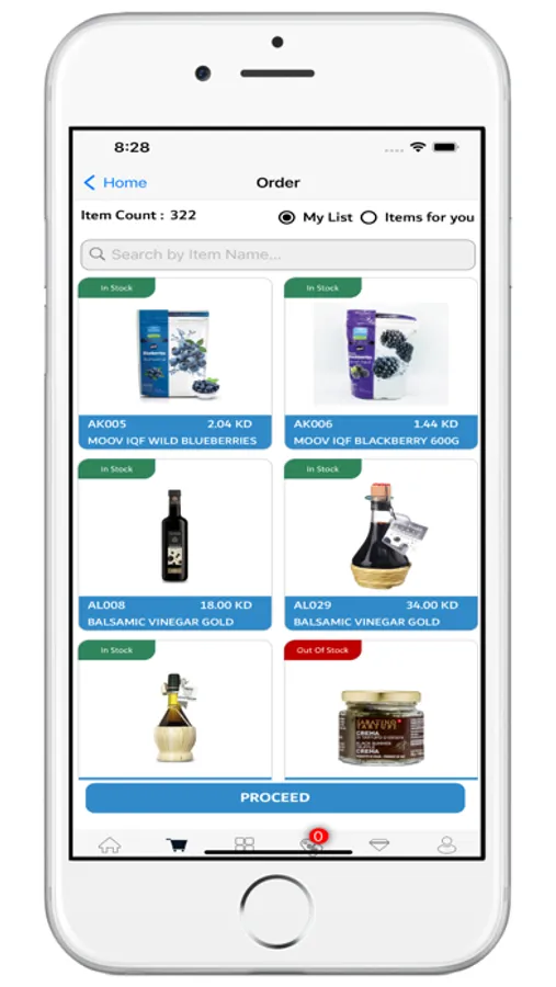 Customers can search any item in the given item list and select multiple items.