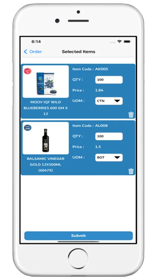 Customers can customize their selected item by changing UOM and QTY.