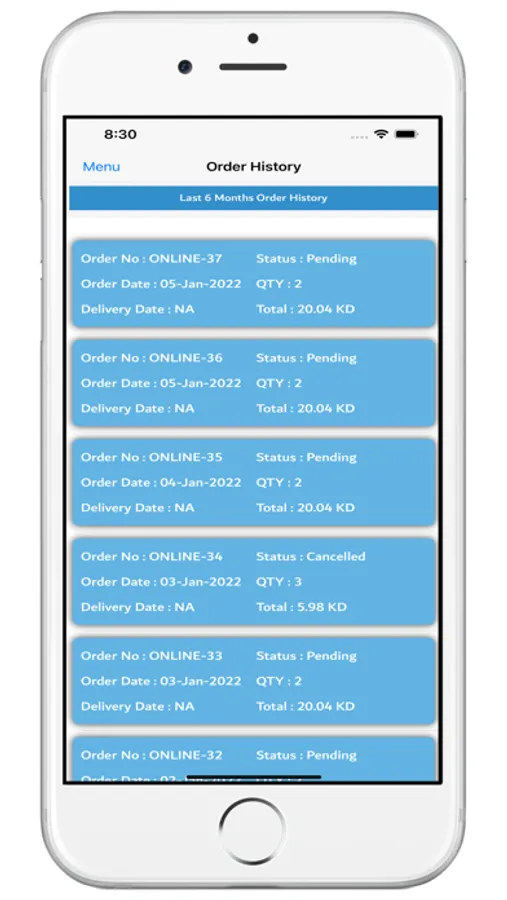 Customer can see order history to see their previous orders.
