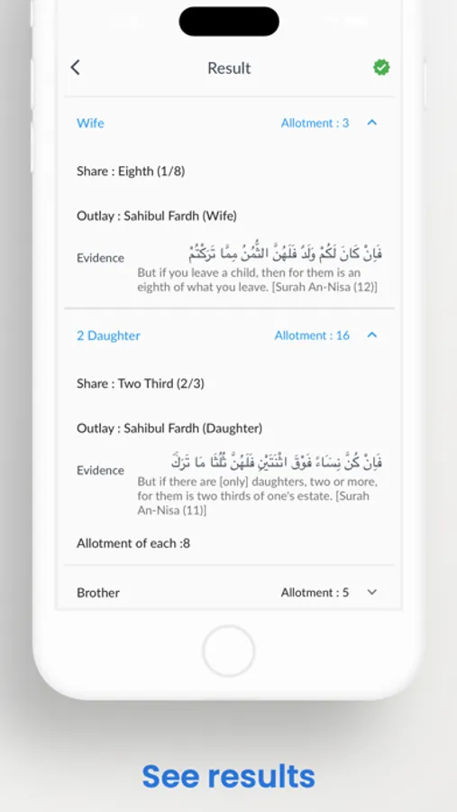 To calculate the inheritance; enter the information about the relatives of the deceased. After all the relevant information has been entered, click on the calculate button to know about how much each relative will inherit as per Islamic inheritance calculation according to Islam.