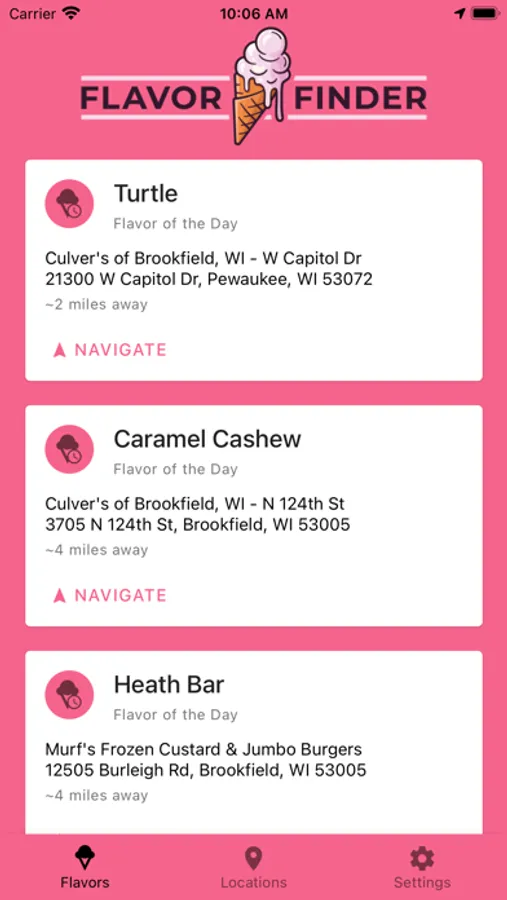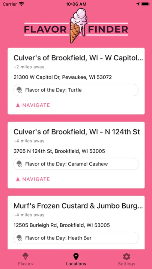 With an emphasis on limited-time flavors, such as Flavors of the Day, Flavor Finder allows you to search nearby ice cream shops for current flavors and specials.