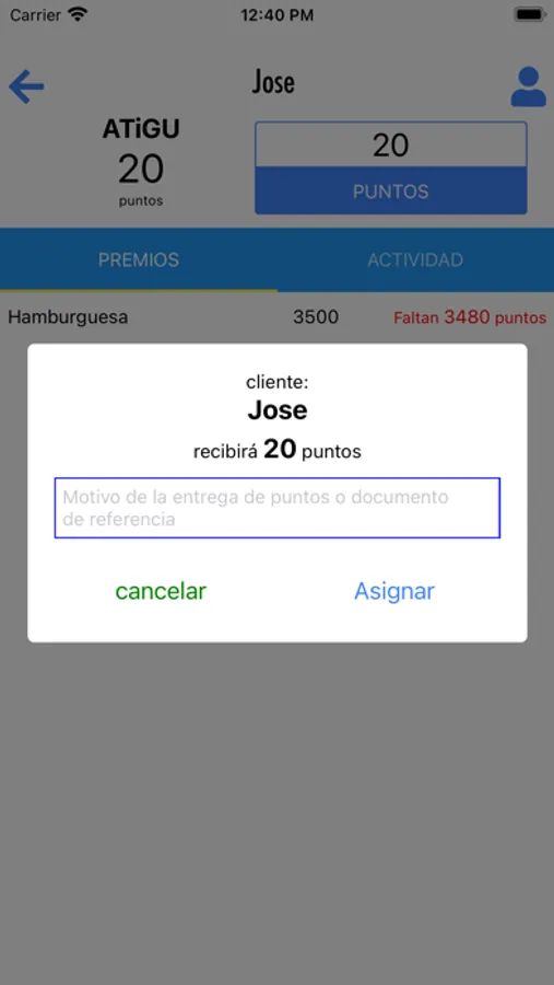- Asignar puntos , también ingresando el monto de consumo ( si se tiene activada esta opción )