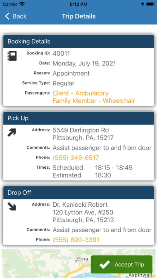 Tennessee Carriers Mobile, a demand response mobile data terminal (MDT), used by the contracted and credentialed transportation provider network, allows Drivers to see previous, current, and future trips in real-time. Tennessee Carriers Mobile allows Tennessee Carriers, Inc to better handle same-day bookings, improve on-time performance, and increase passenger trips per hour the increased efficiency. Available only to Provider Drivers in the Tennessee Carriers, Inc network, Drivers can easily communicate with Tennessee Carriers, Inc staff in real-time to provide instant updates and manifest changes. Through this real-time communication between Drivers on the road and the Tennessee Carriers, Inc offices, we are able to effectively improve the accuracy of information and provide better customer service to passengers.