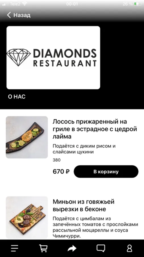 Diamonds delivery — удобный способ доставки ваших любимых блюд из ресторана и столовой Diamonds. Роллы, пицца, стейки и пасты, комплексные обеды и освежающие фирменные лимонады! Приятные бонусы и дополнительный кэш бэк!