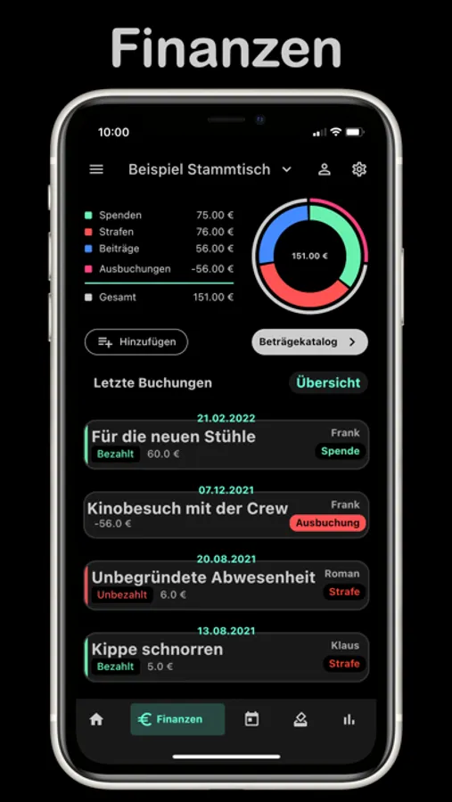 - (In Entwicklung) Erstellt Statistiken über den größten Strafenkönig, chronische Zuspätkommer oder die Topbuchung