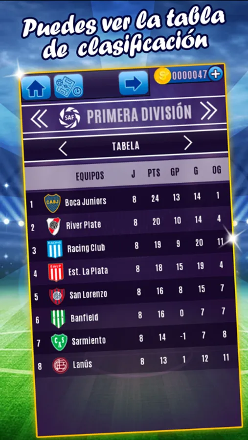 También puede posponer los partidos de liga argentina de futbol para un momento posterior y también puede ver la tabla de clasificación, los próximos partidos y los resultados de los partidos en cada ronda.