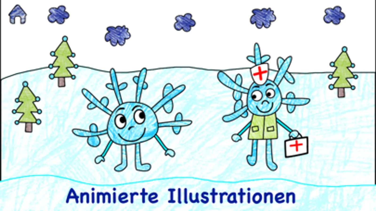Laden Sie die App herunter und finden Sie heraus, wie die Geschichte über die kleine Schneeflocke ausgeht!