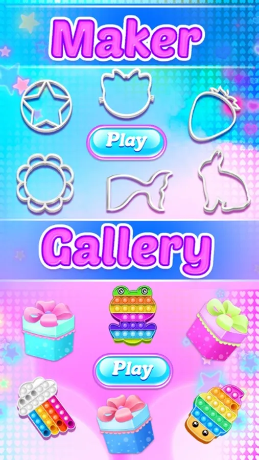 Its time to POP it all! Start game with 2 modes. First its Pop it maker. You can chose rubber colors and shapes to create the perfect Pops! Also you can select textures for playing.