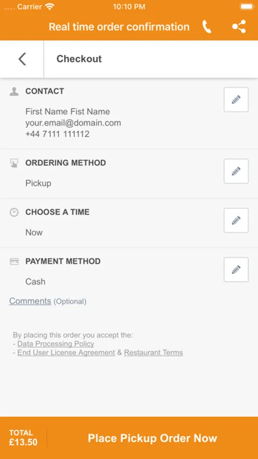 6. Get instant delivery time or collection time on screen once you submit your order.