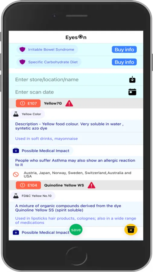 You can create your list of banned products (payable feature for more than 1 photo) to pay attention when shopping
