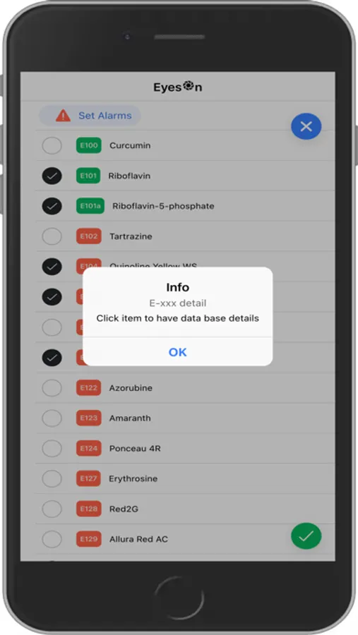 You can set Alarms for E-numbers, so in the scan report the app highlights Exxx found