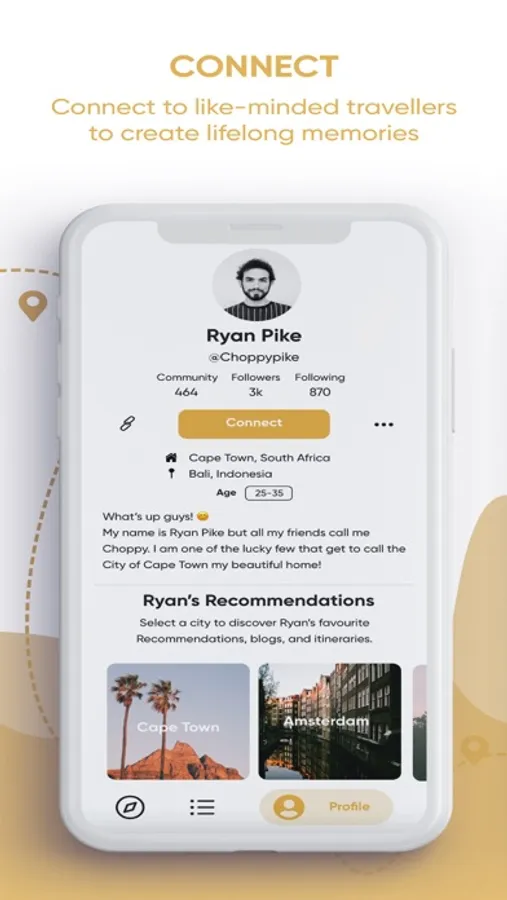 Use our connect feature to access a community of like-minded travellers to share once in a lifetime experiences with new friends.