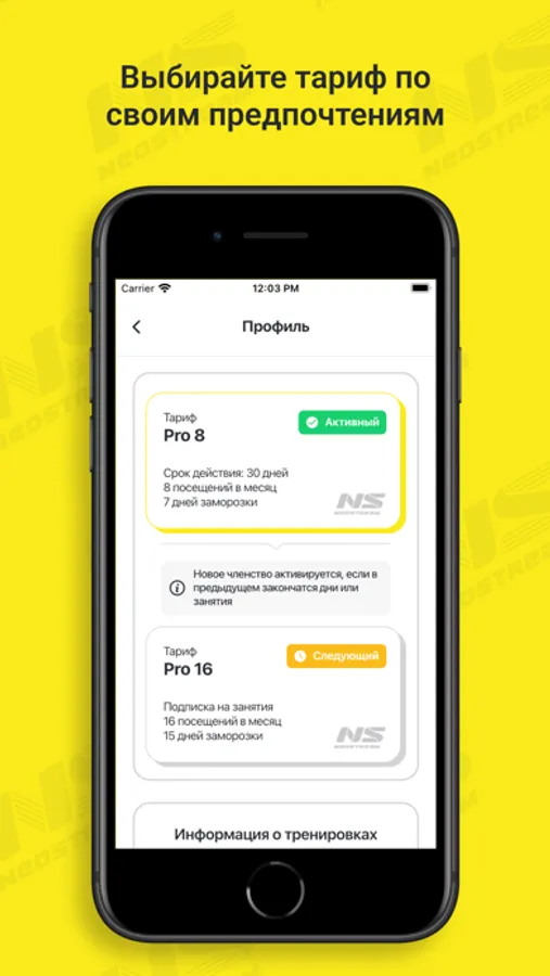 С легкостью контролируй свои тарифы, тренировки и посещаемость, при помощи простого и удобного личного кабинета: