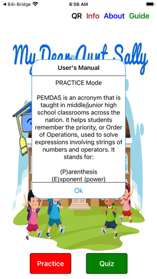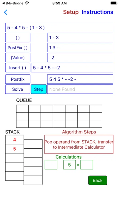We’re going to take a closer look under the hood at Order of Operations algorithms. It will interest programmers and school students alike; for programmers, the use of queues and stacks will reinforce previous computer science learning; for students, it allows them to write an expression, then analyze it using Order of Operations rules, step by step. The Quiz mode generates random expressions of user selected lengths and magnitudes and checks the student's answer. Incorrect answers can be examined using the same step by step process.