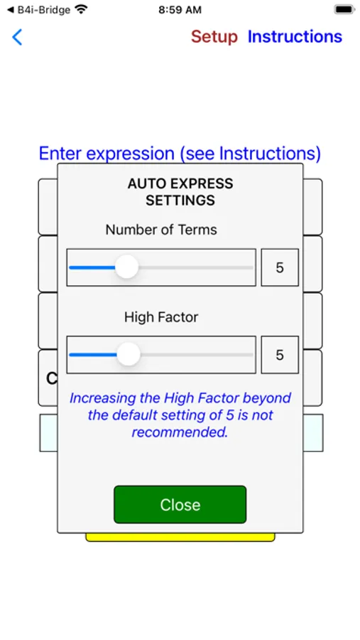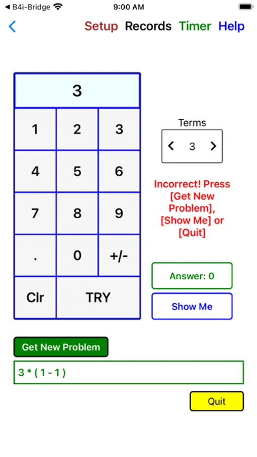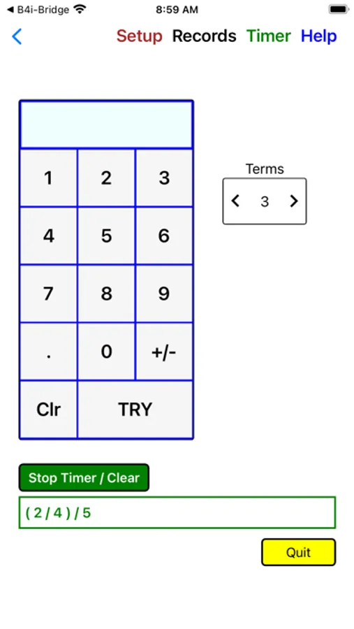 In the QUIZ mode, between two and ten variables can be selected, their maximum value and which operators that are eligible. The program then randomly generates an algebraic expression using these parameters.