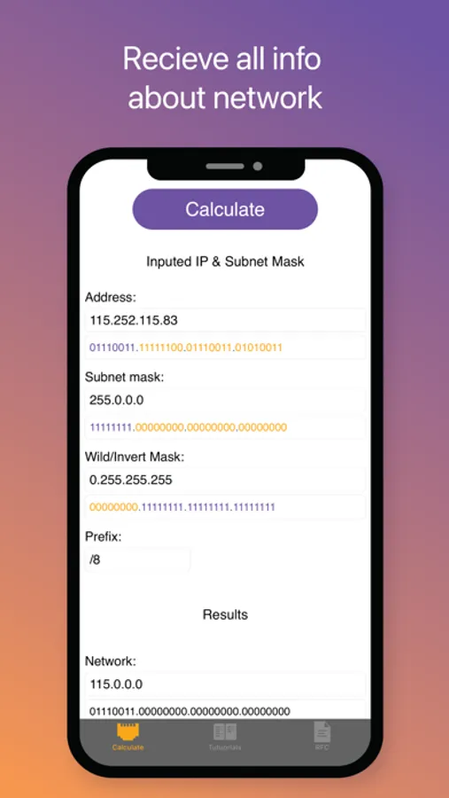 Just enter an IP and subnet mask and you will get all information related to that local network in decimal, binary and hexadecimal formats.