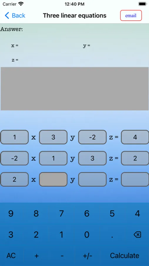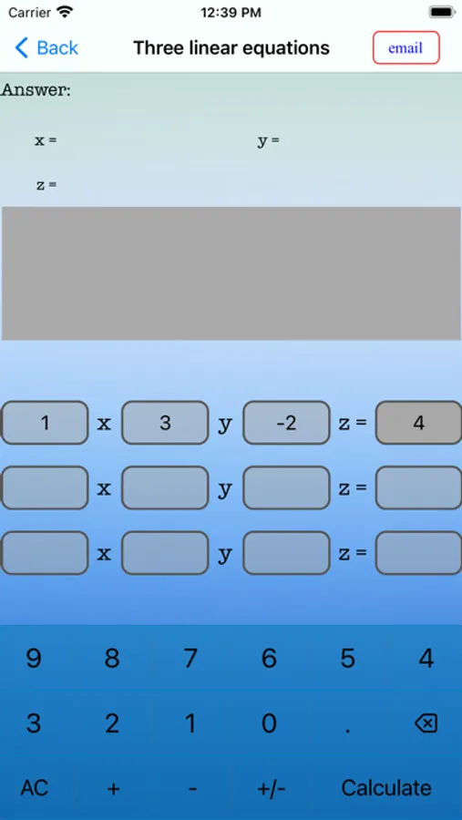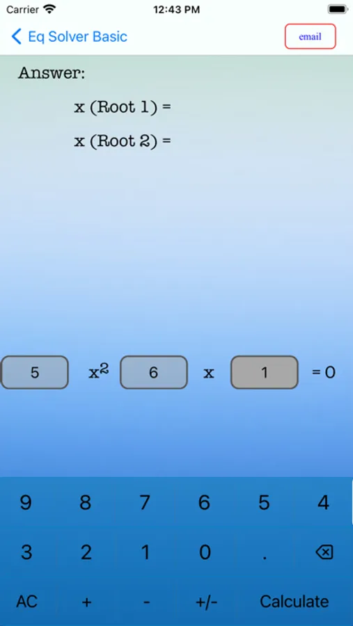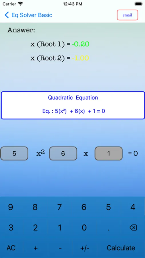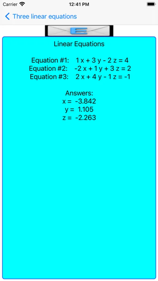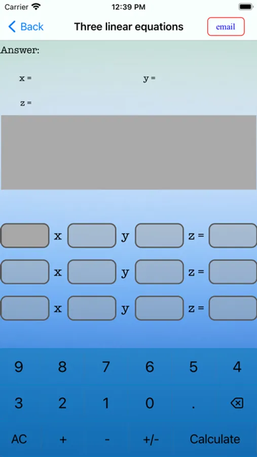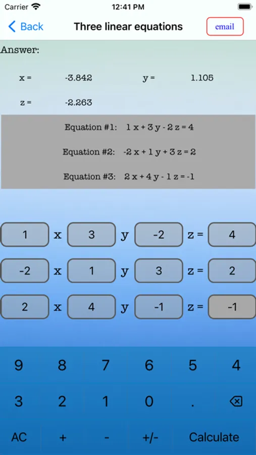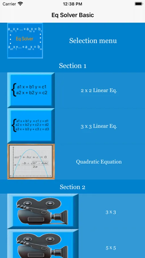 This app can handle 2 x 2 and 3 x 3 linear equations and a quadratic equation.