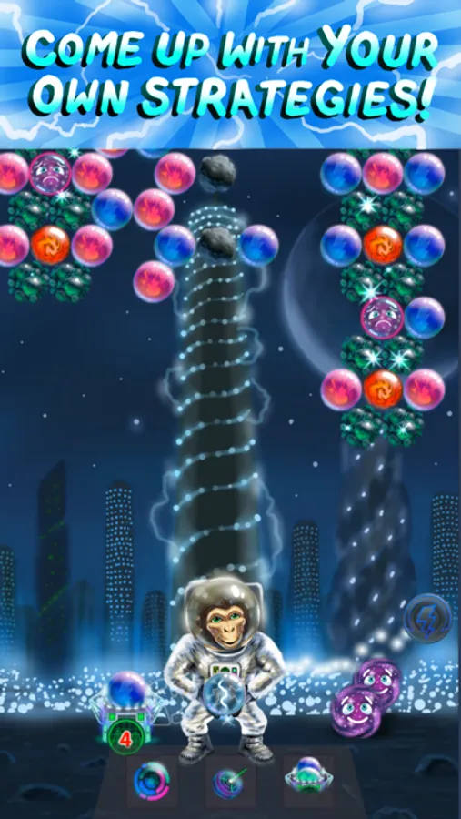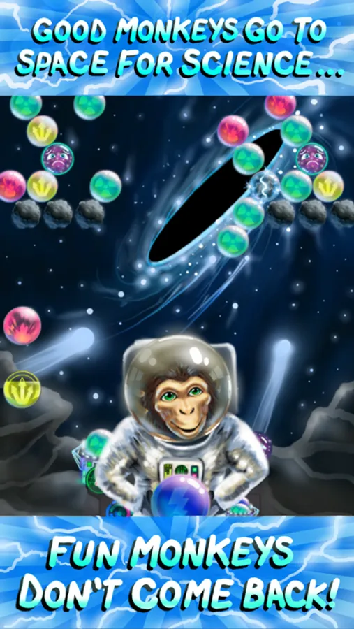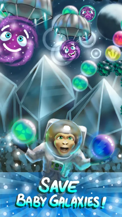 An angry gorilla cyborg has trapped baby galaxies in bubbles to harvest their energy and stop the expansion of the universe. And it's up to you to set them free! Play as Astro Chimper, a monkey sent to space for science- who then decided to go rogue to explore the universe instead of returning to earth. But now, he has a new mission...