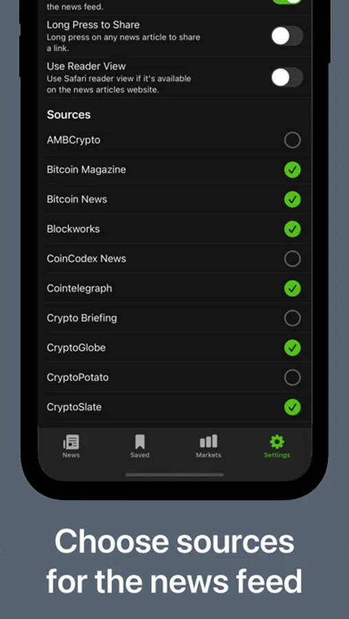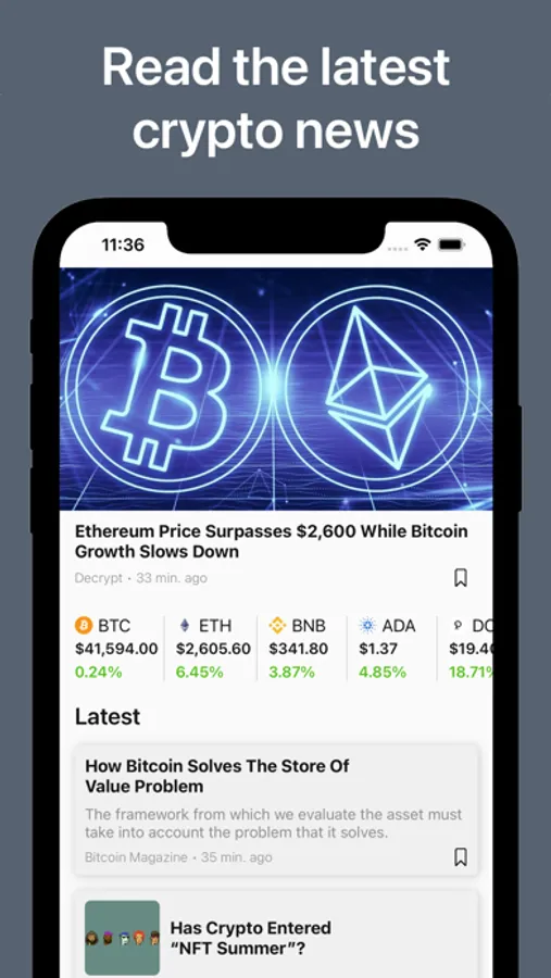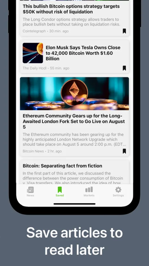 Stay up-to-date with crypto news from many different sources! Read articles directly in the app.