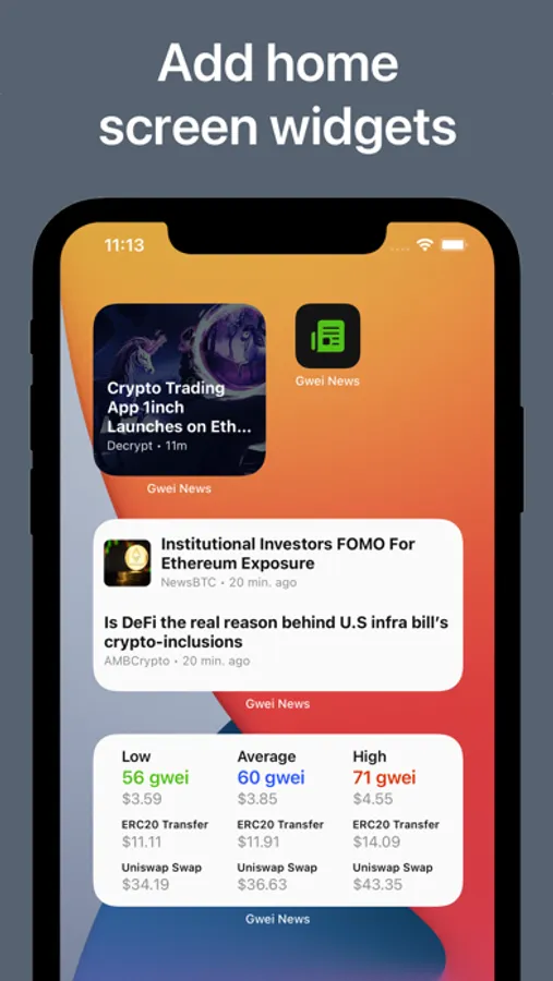Widgets! See the latest news or Ethereum gas fees on your home screen.