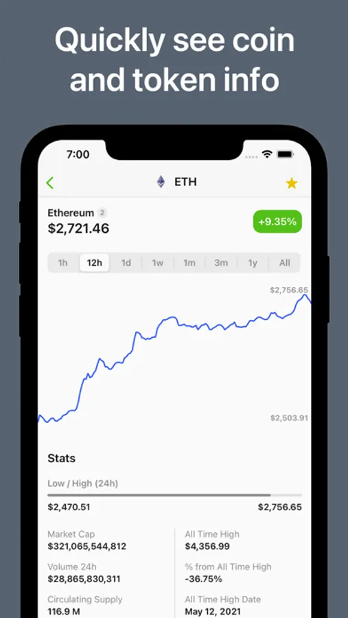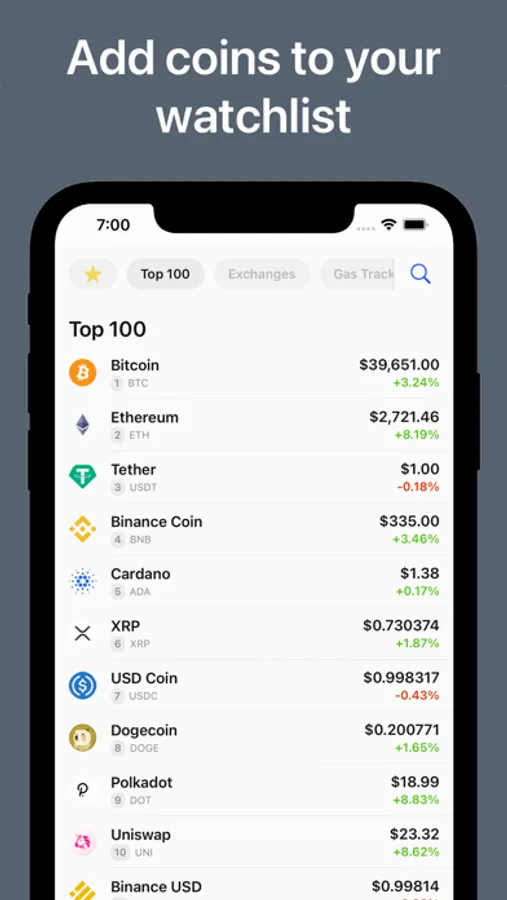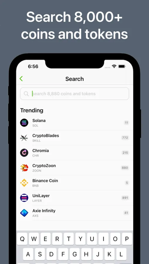 Search over 8,000 coins and tokens to get different information on them! Add to your watchlist to keep track.