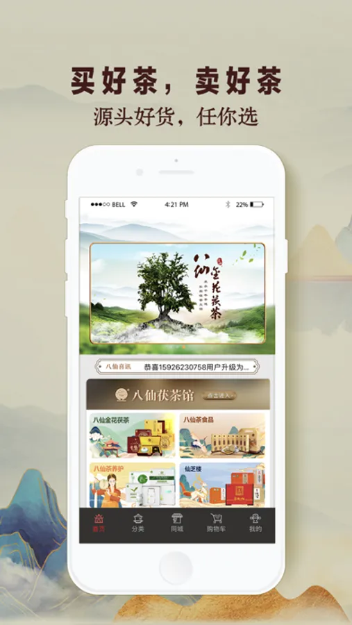 八仙茯茶馆商城是专门为您提供高品质的茶叶、茶具、茶食品等一系列产品服务,八仙金花茯茶-茶中灵芝,能喝的古董,高端销量全国领先,产自“中国海峡硒都”“世界长寿之乡”之称的福建省诏安县。从源头把控品质,成就一杯好茶,打造新零售体验店全国加盟品牌,引领茶产品的发展变革,服务万千茶店,传承匠心好茶。平台特色:1.购茶:新品、经典品、分类明确,茶叶介绍详细,您可以根据自己喜好需求购买爱茶。2.品质保障:从源头把控茶叶质量,高标准精心筛选,只为寻得质优价美的好茶。3.经典产品积分换购,赚钱喝茶两不误。4.、平台线上专卖店体系,轻松查询,实时定位,让您的购买更加便捷。5.通过互联网+连锁加盟模式,让茶友喝好茶变得非常简单和方便。微信公众号:teamall365官方网站:www.teamall365.com