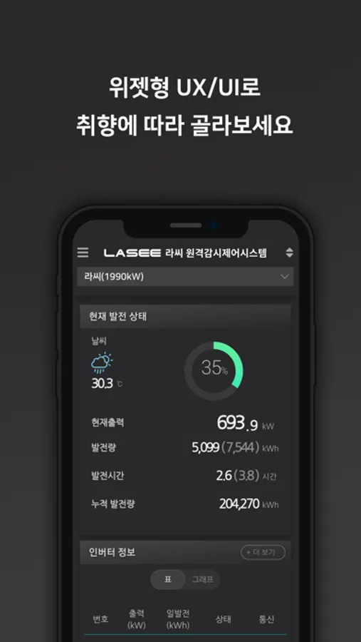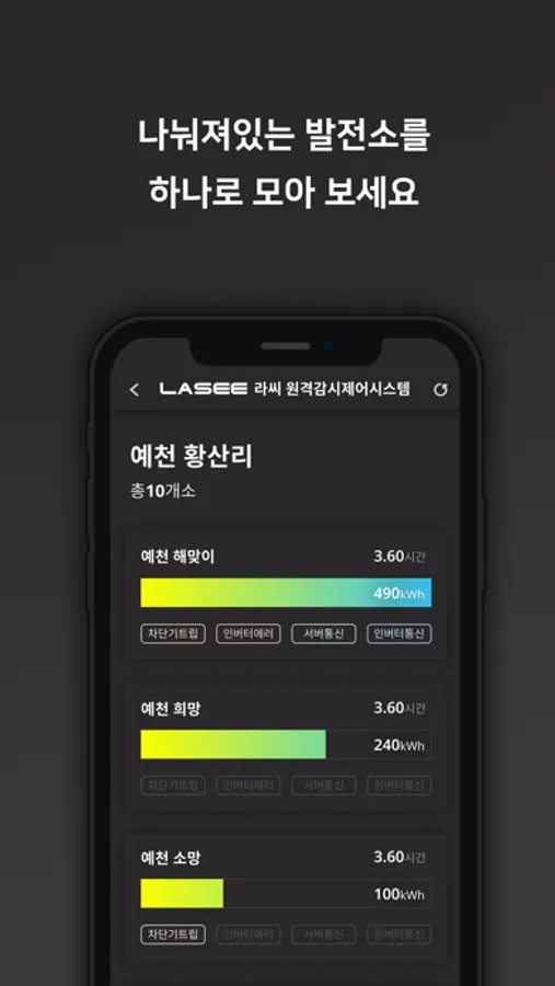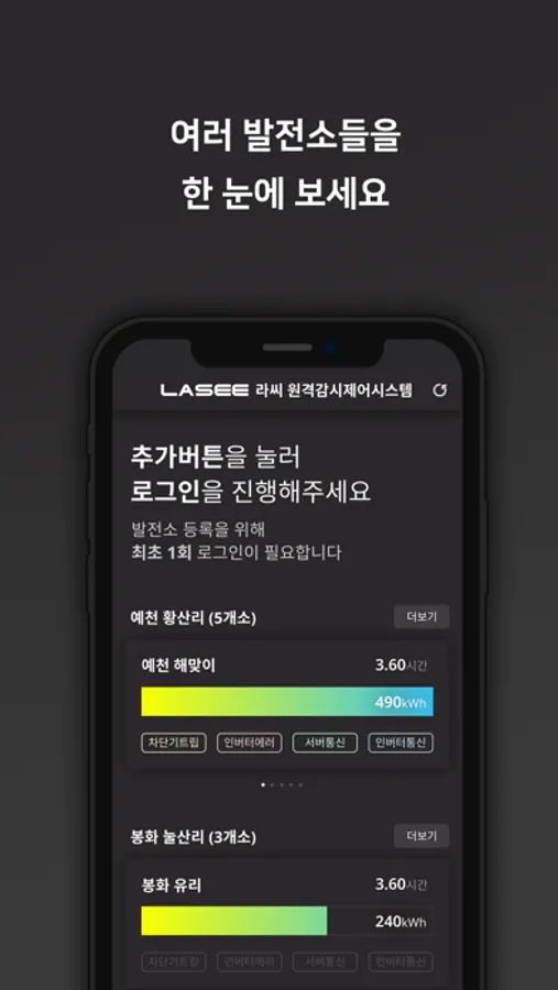 라씨 태양광 발전소 모니터링 앱으로 앱을 설치하시면 웹에서 보시는 내용을 그대로 보시는 부분 외에 '푸시 알림' 기능이 제공됩니다.
