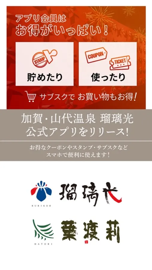 加賀・山代温泉 瑠璃光・葉渡莉 公式アプリをリリースしました。