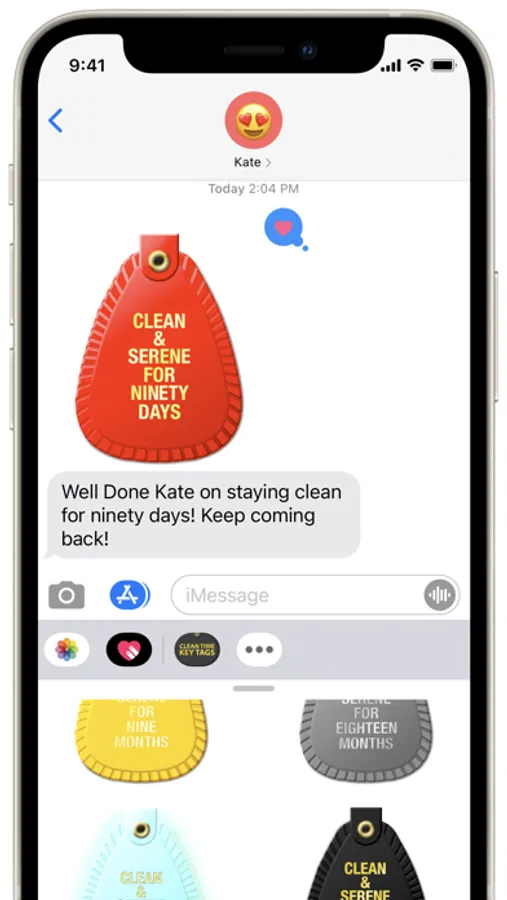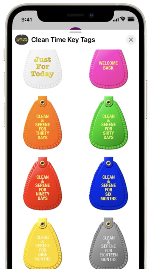 This set of NA Clean Time Key Tags for iMessage ranges from “Just For Today” to “Multiple Years Clean”.