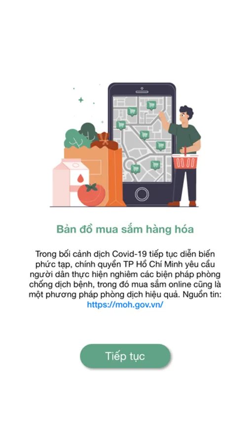 Ứng dụng cung cấp thông tin các điểm bán mặt hàng thiết yếu phục vụ cộng đồng.