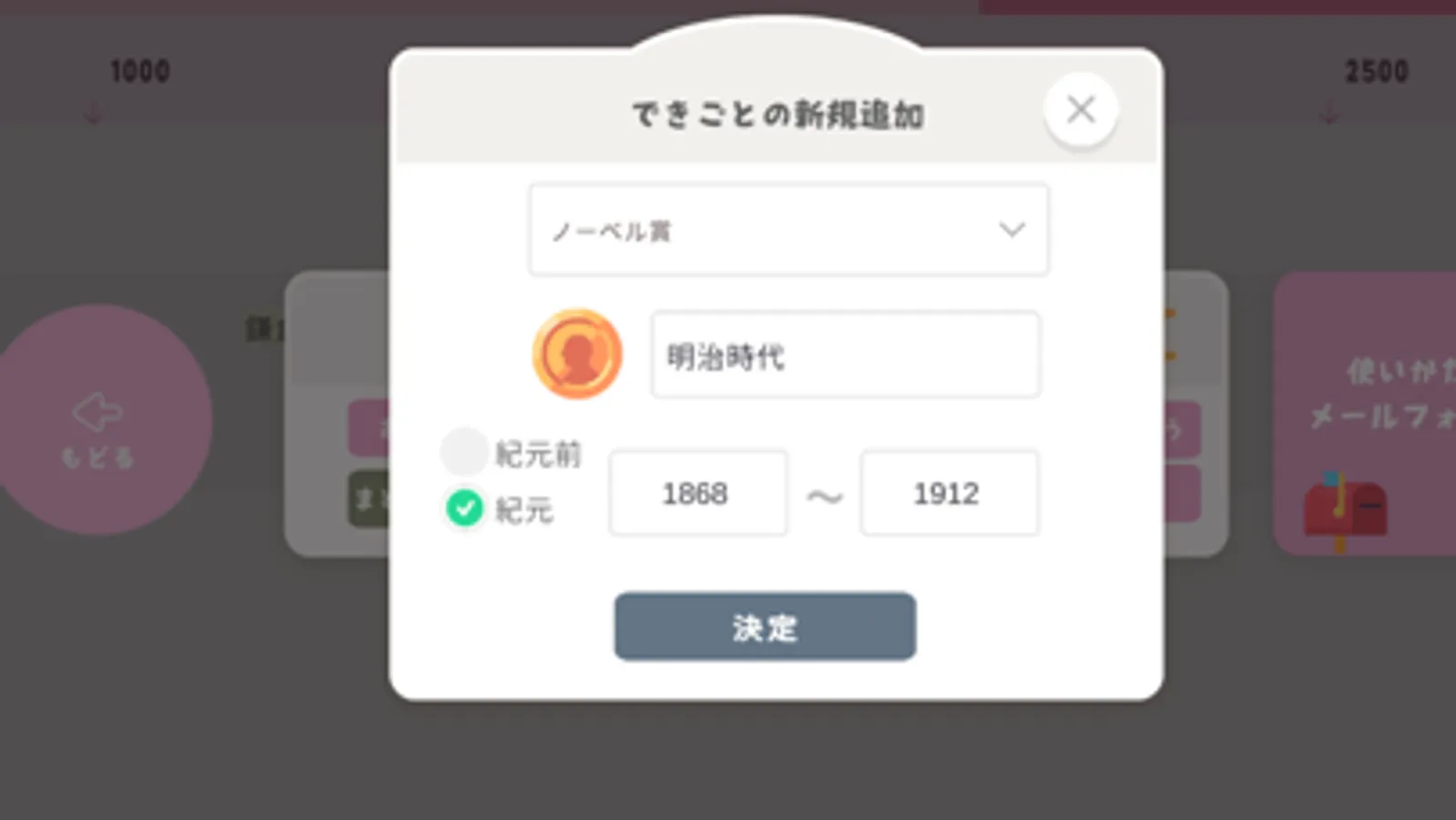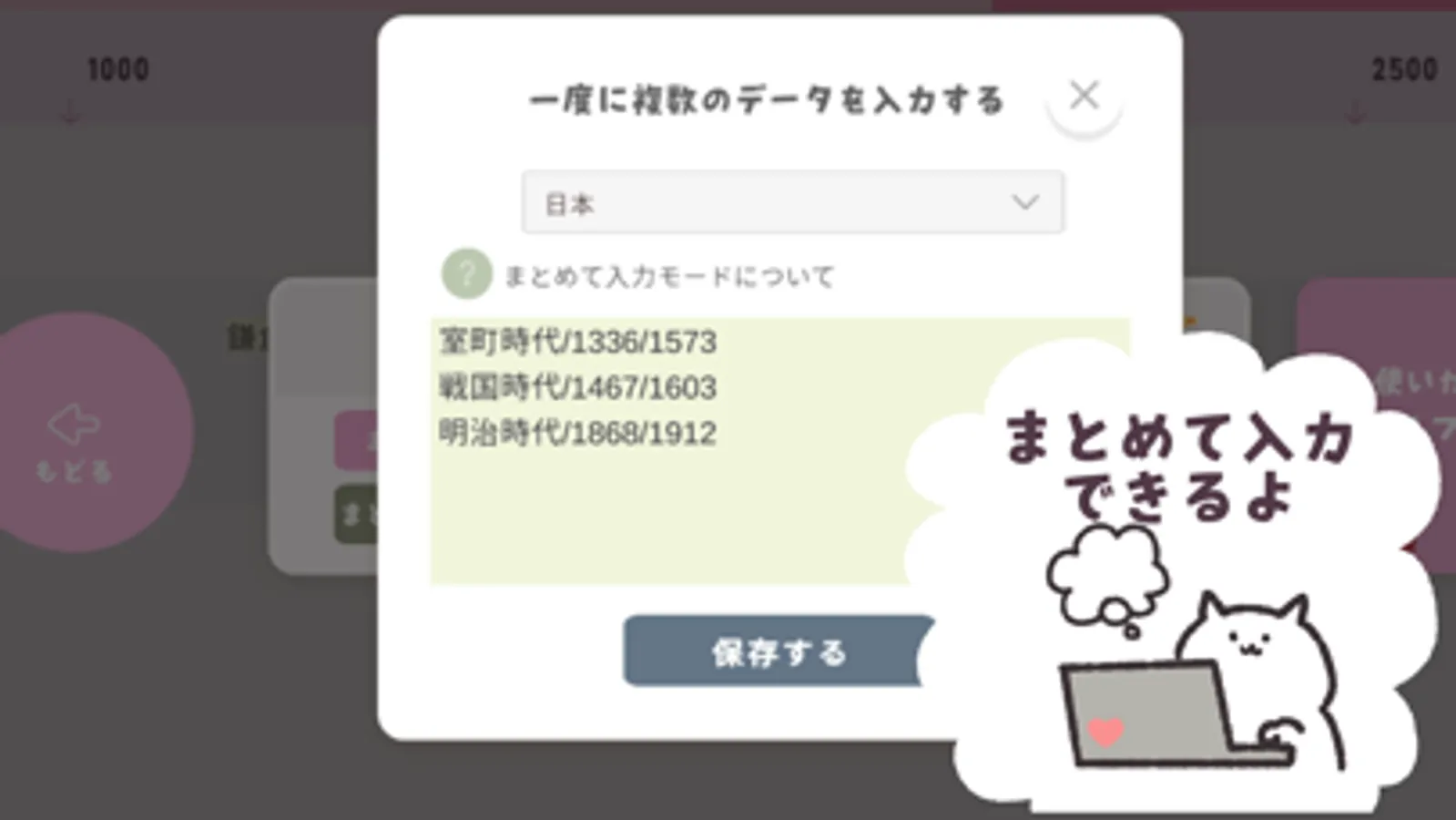 ・紀元前3000~3000年のできごとが入力できます。