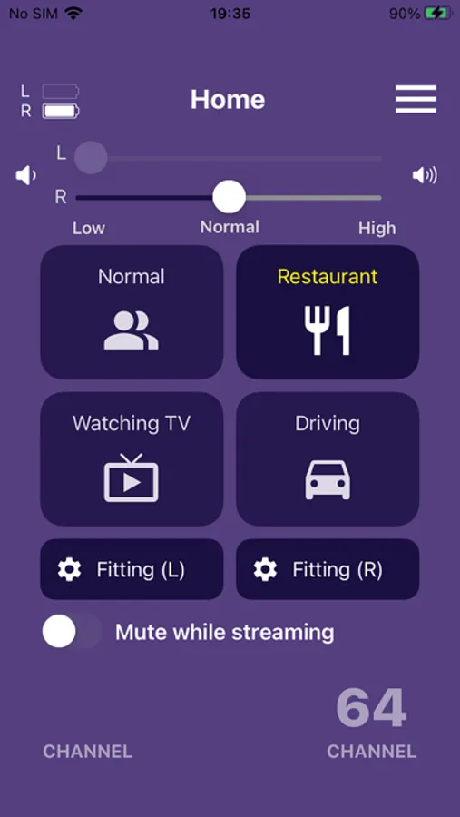 - Mode setting per surroundings (general, restaurant / subway, watching TV, driving)