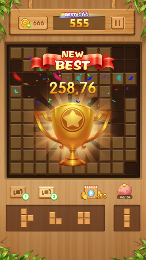 * Get as many points as you can to become a wooden block puzzle master!