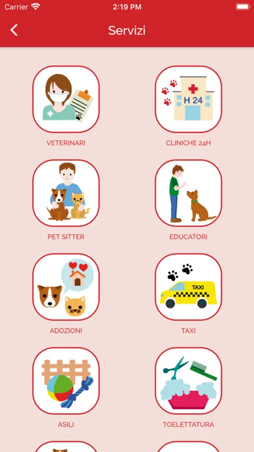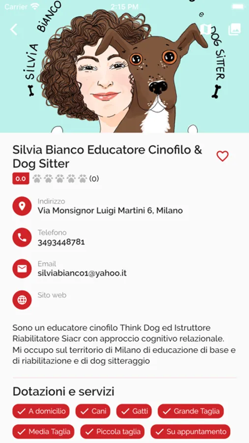 Un passaparola digitale che aiuterà noi e i nostri pet a districarci in ogni città italiana. Puoi selezionare il servizio che ti interessa con un semplice click. Affina i risultati in base alla regione e ai filtri. Se crei un account puoi salvare i tuoi servizi preferiti e pubblicare una recensione.