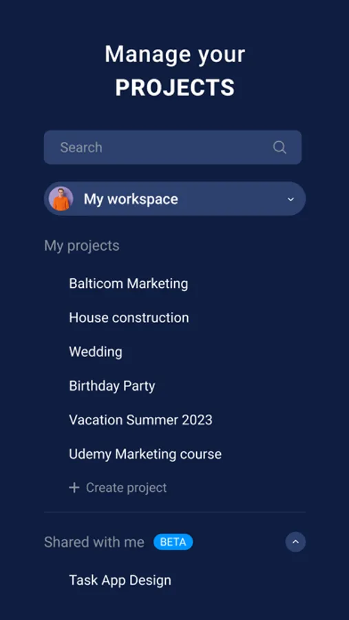 - Create projects and add tasks there