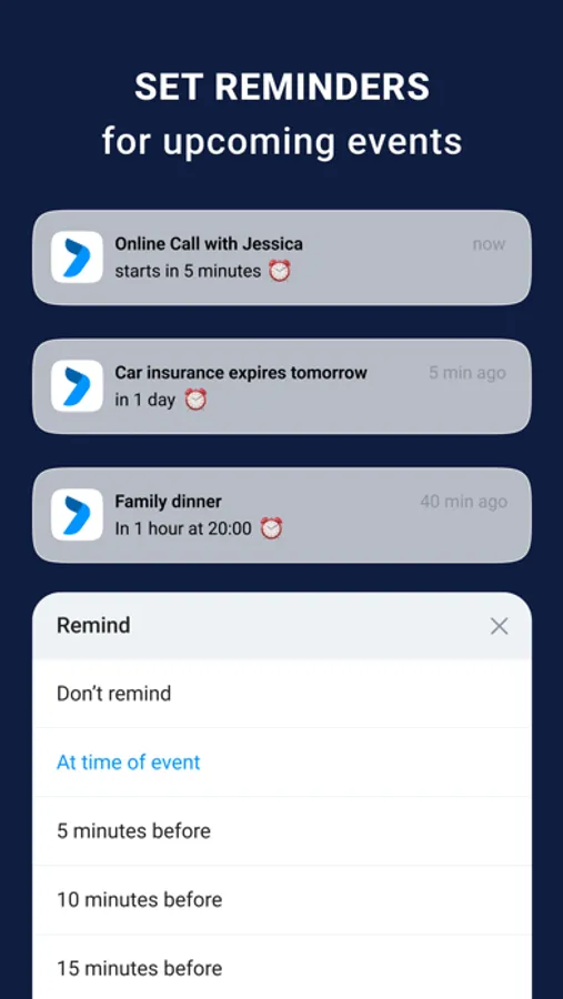 - Set reminders for upcoming events and never miss the online call again