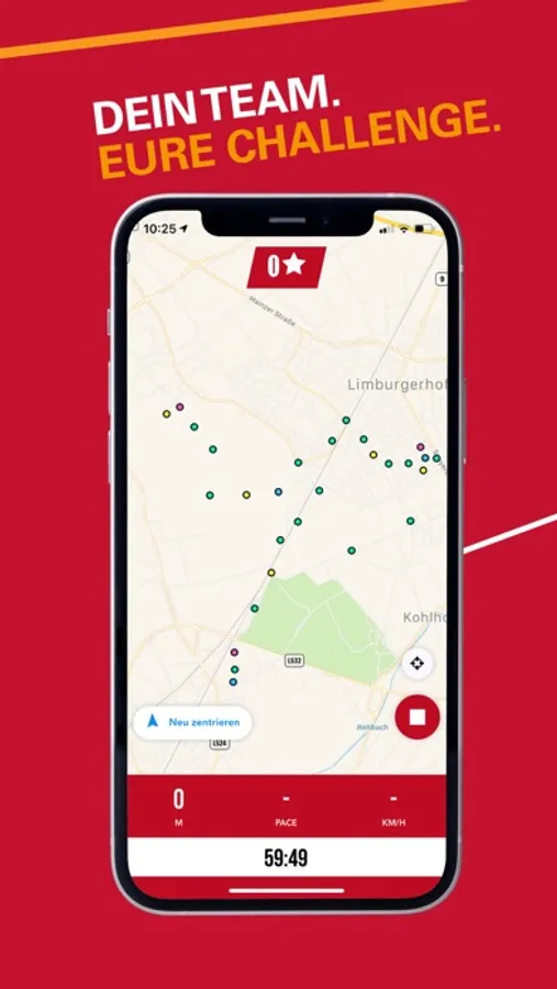 Legt im Rahmen eurer normalen sportlichen Aktivitäten eure gewünschte Strecke laufend, walkend, wandernd oder mit dem Fahrrad zurück - ganz egal wo, wie lange und wie oft. Nehmt die App oder euren verbundenen Fitnesstracker mit und zeichnet das Training auf. Für jeden zurückgelegten Kilometer erhaltet ihr Punkte, die automatisch in die Wertungen einfließen.