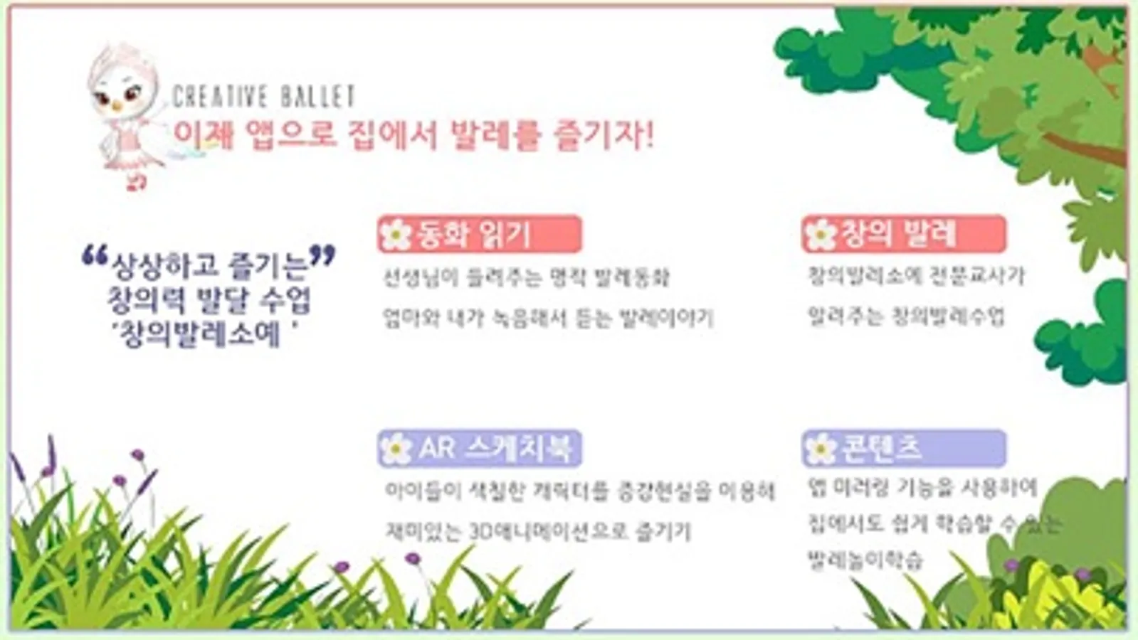 창의발레소예에서 제작된 이 어플은 발레와 IT기술이 접목된 아이들이 쉽고 재밌게 발레를 배울 수 있게 도와주는 어플입니다.