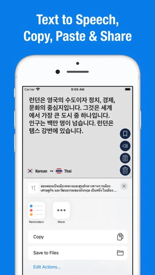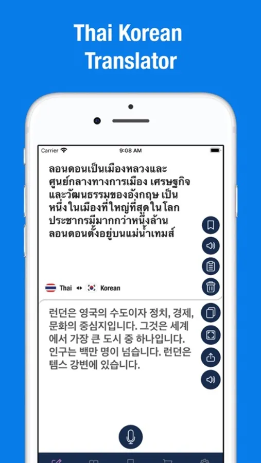 It is a translation tool that helps you break down language barriers. Excellent app for all who make the first steps in learning Thai or Korean languages. Intuitive interface, easy navigation, quick result. Begin conversations confidently!