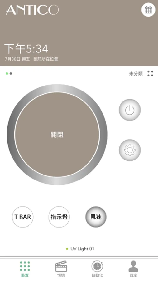 ANTICO空氣清淨滅菌燈,可利用單機無線搖控器來控制ANTICO的風速及運