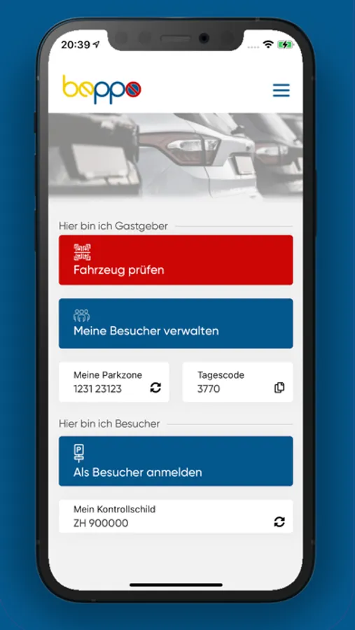 beppo hat das Parkieren digitalisiert. Deshalb benötigen Sie keine Parkplaketten mehr. Ihre Besucher, Kunden oder Mitarbeiter scannen mit dem Smartphone einfach den QR-Code auf Ihrem beppo-Parkzonenaufkleber und geben den Code ein, den Sie ihnen mitteilen. Damit sind sie registriert und können nicht für Falschparker gehalten werden. Natürlich können Sie Ihre Besucher und Kunden mit Hilfe der beppo-App auch selbst und mit nur einem Klick an- oder abmelden. Ohne Parkplaketten. Digital und umweltschonend.