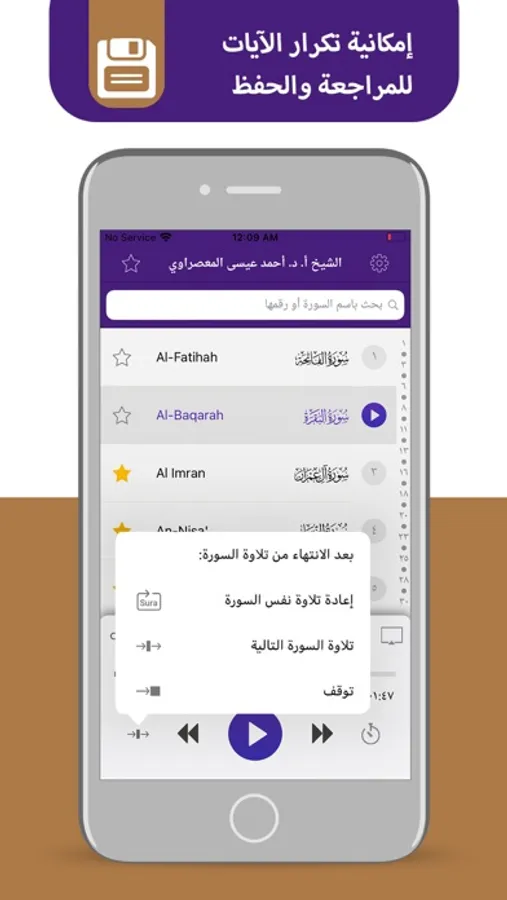 - إمكانية تكرار الآيات للمراجعة والحفظ.
