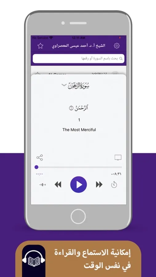 - إمكانية الاستماع وقراءة نص الآيات في نفس الوقت.