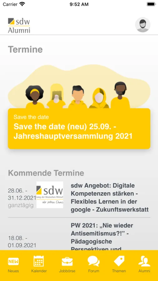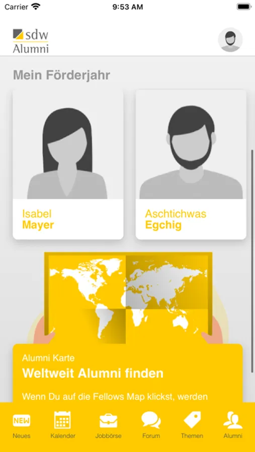 Bunter, einfacher, intuitiver und auf dem Handy immer dabei, das ist die sdw-Alumni-App. Ergänzend zum Portal bietet sie neue Funktionen, z.B. die Suche nach Vereinsmitgliedern in Deiner Nähe oder in Deinem Unternehmen. Und das, egal wo Du bist auf der Welt.
