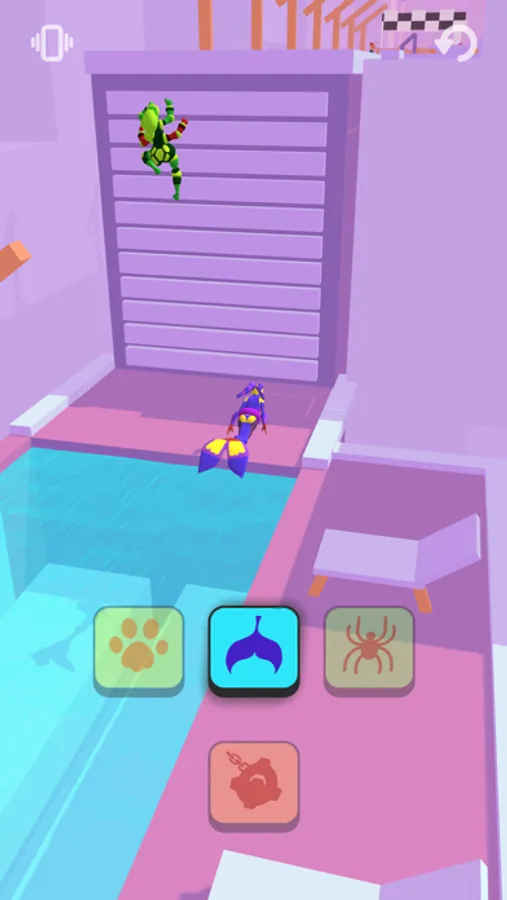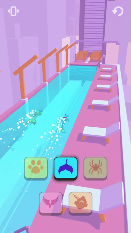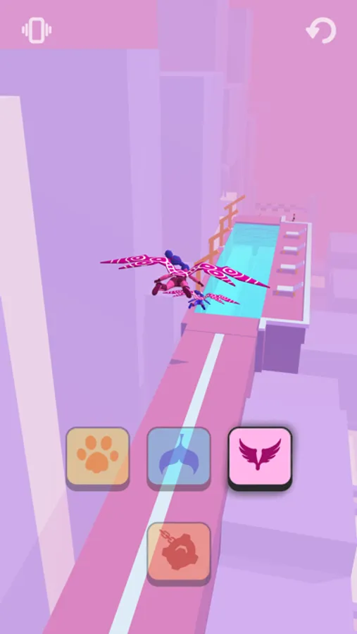 Race against a girl on a track with a changing landscape. Use different superpowers to adapt to the environment! Reach the finish line first and win!