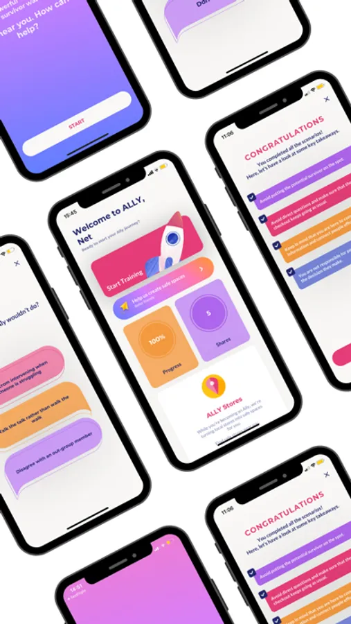 Currently, there are 327 gender-based violence applications out there. 47% of those have a ‘SOS’ button as their main feature and 0 are focused on equipping bystanders: the first people around when help is needed. That’s where we come in. ALLY is the first application to upskill bystanders and harness them as a support system to help those being abused. But we won’t stop there. Our aim is to turn your local stores employees into allies too. So that stores also become safe spaces.