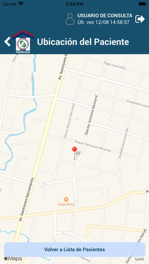 Con la aplicación Medicasa, el usuario puede consultar su agenda de pacientes y registrar algunos datos del mismo como localización, diagnóstico y otros más.