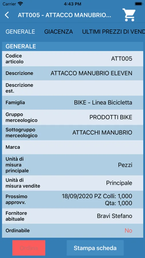 Anagrafìche articoli, giacenze, ultimi prezzi di vendita/acquisto, listini e sconti applicati sull’articolo, raccolta ordini, firma elettronica e invio della versione stampabile.