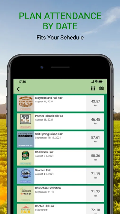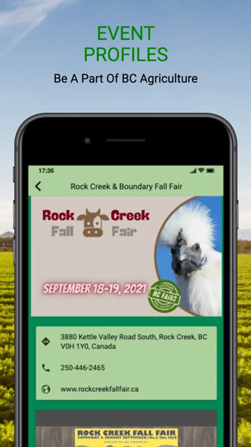An app for British Columbia agriculture fair enthusiasts. With our app you can find agriculture events across British Columbia, Canada including fairs, exhibitions and festivals. Explore events by distance or date. Learn about each event in their profile. Add your voice in our community feature. Get reminders of upcoming events. Perfect for the fun seeker and local food enthusiast looking to learn.