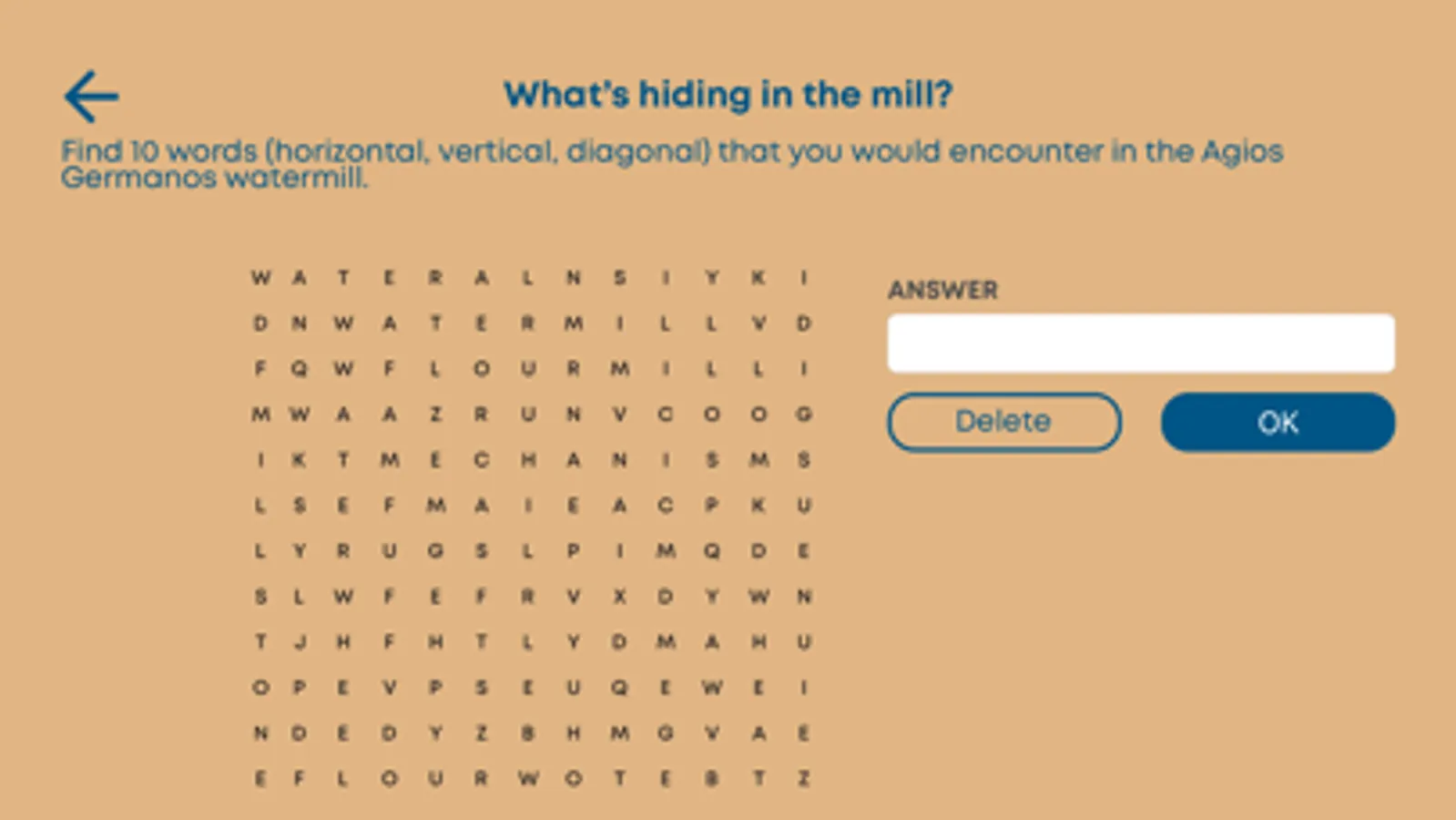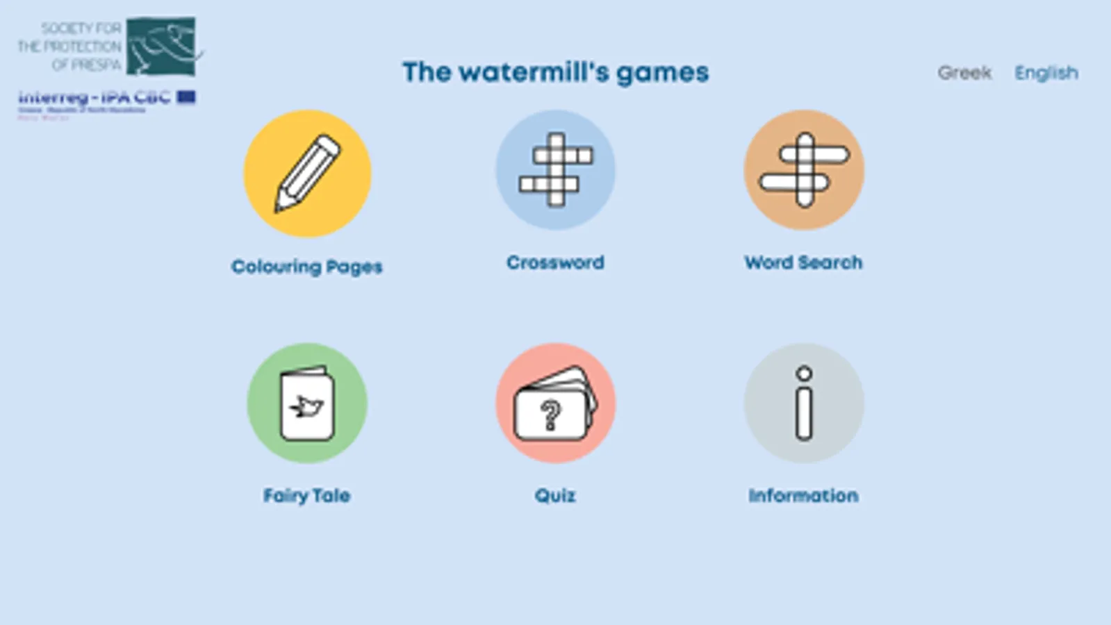 The Watermill Games application includes fun activities for children, through which they can learn about the functions of the watermill of Agios Germanos, its connection with the natural environment, but also to get to know better the Prespa area and its rare flora and fauna.